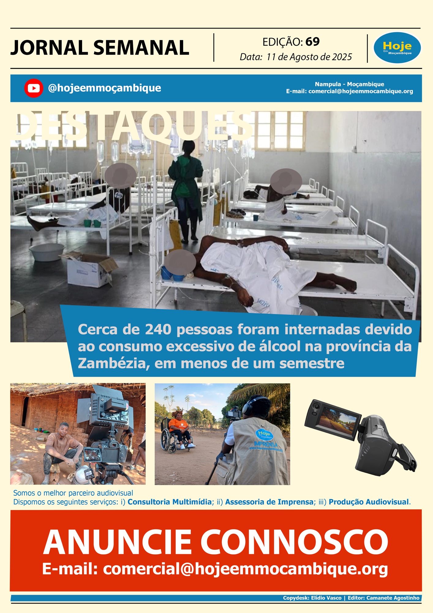 Cerca de 240 pessoas foram internadas devido ao consumo excessivo de álcool na província da Zambézia, em menos de um semestre Posted by @hojeemmocambique August 11, 2025 96 Views Last Updated: August 11, 2025 JORNAL SEMANAL-EDIÇÃO 69 -=- HOJE EM MOÇAMBIQUE.pdfDownload Previous Article Importância do leite materno para o desenvolvimento do bebê Next Article Juventude de Pemba Incentivada a Apostar em Projetos Agro-Sustentáveis