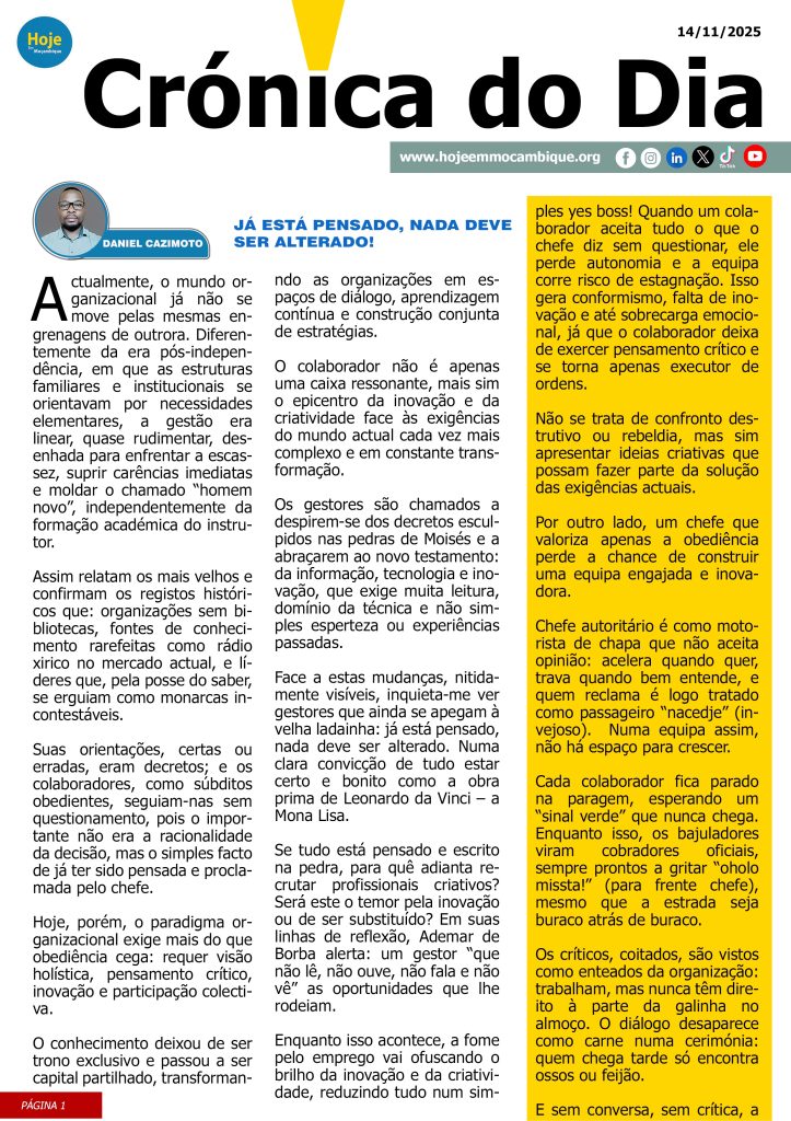 JÁ ESTÁ PENSADO, NADA DEVE SER ALTERADO!