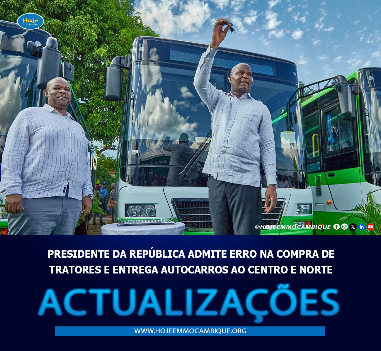 O Presidente da República, Daniel Francisco Chapo, reconheceu que foi um erro a aquisição de tratores para a cidade de Maputo, defendendo que este tipo de equipamento deve ser priorizado para zonas rurais, durante a cerimónia de entrega de 100 autocarros para as regiões centro e norte do país.