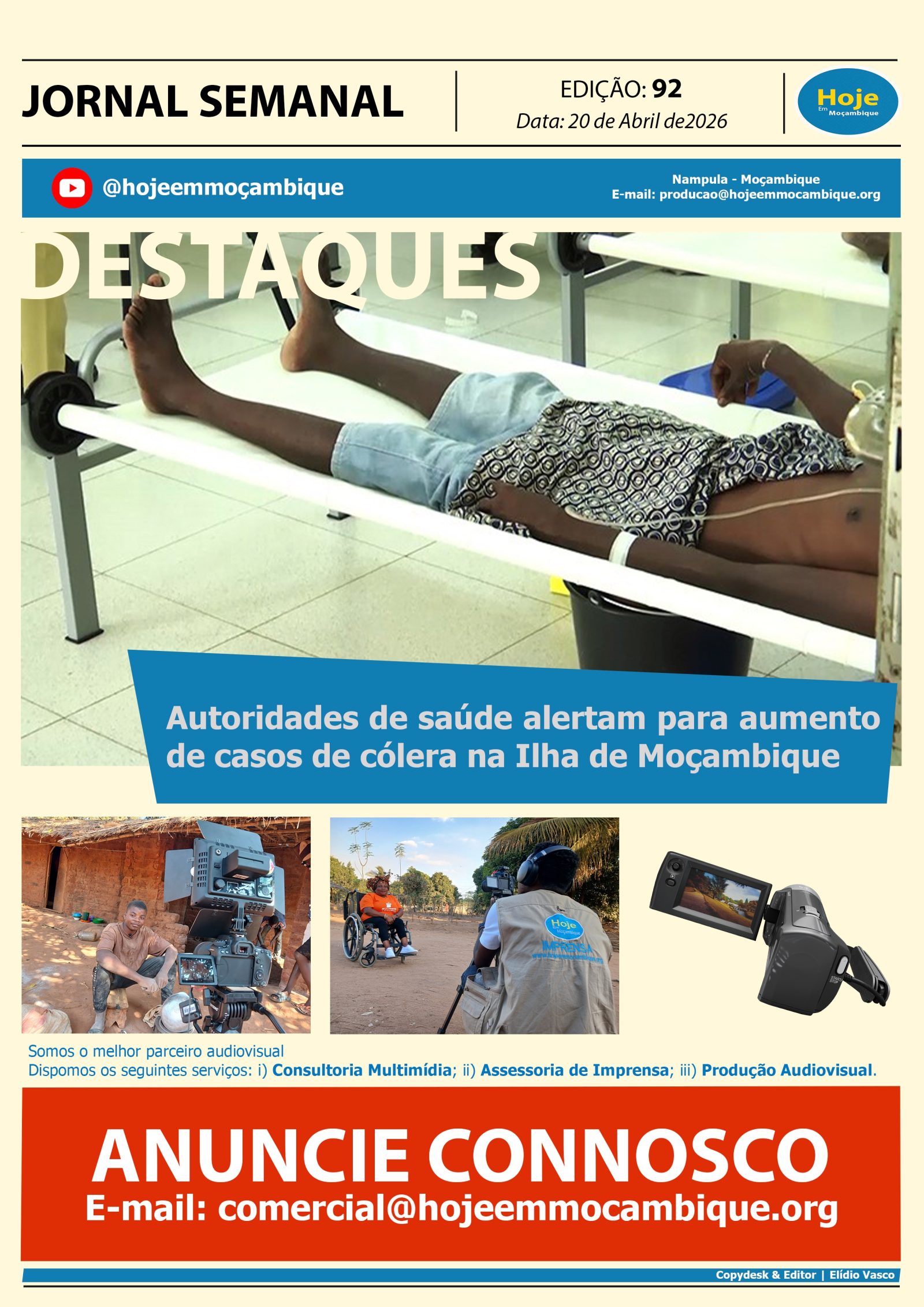JORNAL SEMANAL Edição 92 Segunda-Feira 20 de Abril de 2026 Posted by @hojeemmocambique April 20, 2026 6 Views Last Updated: April 20, 2026 JORNAL SEMANAL Edição 92.pdfDownload Previous Article AUTORIDADES DE SAÚDE ALERTAM PARA AUMENTO DE CASOS DE CÓLERA NA ILHA DE MOÇAMBIQUE