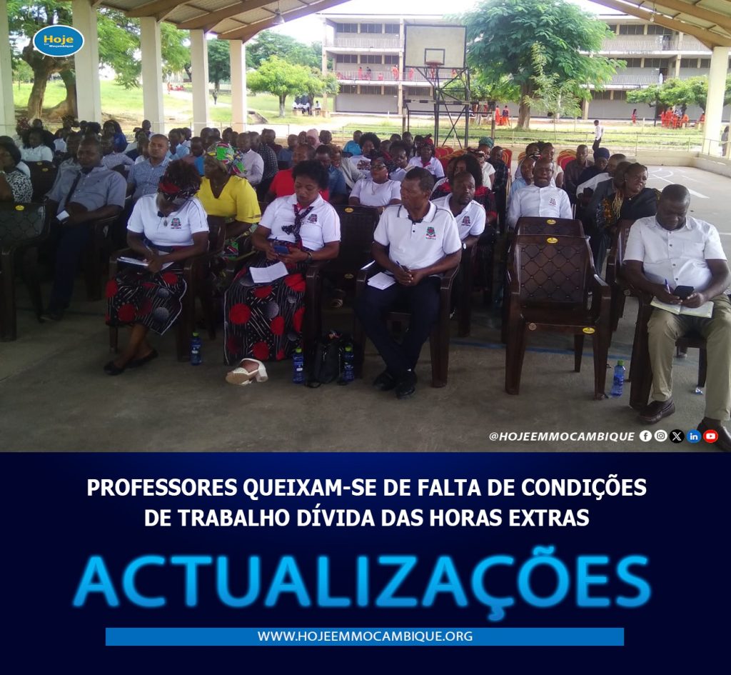 Entre as principais preocupações apresentadas estão os atrasos no pagamento das horas extras, a falta de assistência médica e medicamentosa, além das condições precárias de trabalho enfrentadas pelos professores em várias escolas da província.
